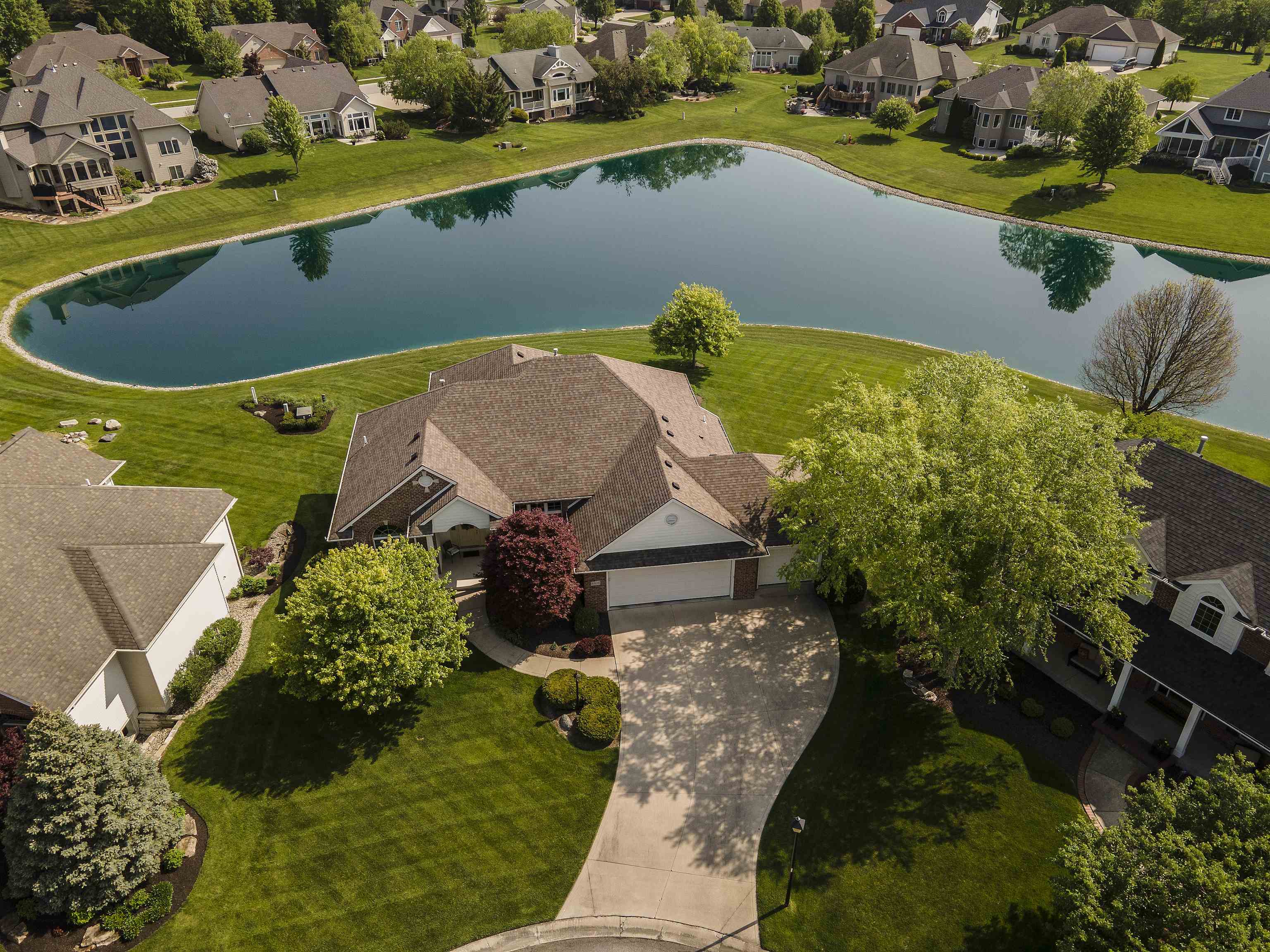 Welcome to Cherry Hill the Premier Golf Course Community on the NE side of Ft Wayne. This Custom Built 1 Owner Ranch sits on a Cul-de-Sac Pond Lot. See the detail in the Brick Quoin Corners, Hip Roof Line with an Architectural Shingle, Extensively Landscaped Yard, Full Yard Irrigation System. Come inside to the Foyer with Hardwood Floors and Crown Molding, which Opens to Formal Dining Room with Hardwood Floors, Triple Set of Floor to Ceiling windows, Double Trey Ceiling, Columns & Crown Molding. Great Room with Trey Ceiling, Crown Molding, Wall of Windows overlooking the back yard, Gas Log Fireplace. Den off Foyer with a Cathedral Ceiling and Glass French doors off the Front. Open Kitchen with Harlan Custom Cabinets, Walk In Panrty hardwood Floors, Breakfast Nook over looking pond & back Deck. Main Bedroom with Wonderful Views of the back yard and Pond, Full Bath with Double Sinks, Jacuzzi Tub & Stand Up Shower plus Walk In Closet wtih a Pocket Door. Nice sized 2nd & 3rd bedrooms both with Full baths just right outside the door. Laundry Room on the Main Level with Cabinets, Folding Table and Built In Ironing Board. Finished Daylight Basement plumbing for a wet bar and also a Large Storage Area. This home has Lots of Bells & Whistles, come check it out. Close to Shopping, Restaurants, Schools, Hospitals, I469 and Much much More.