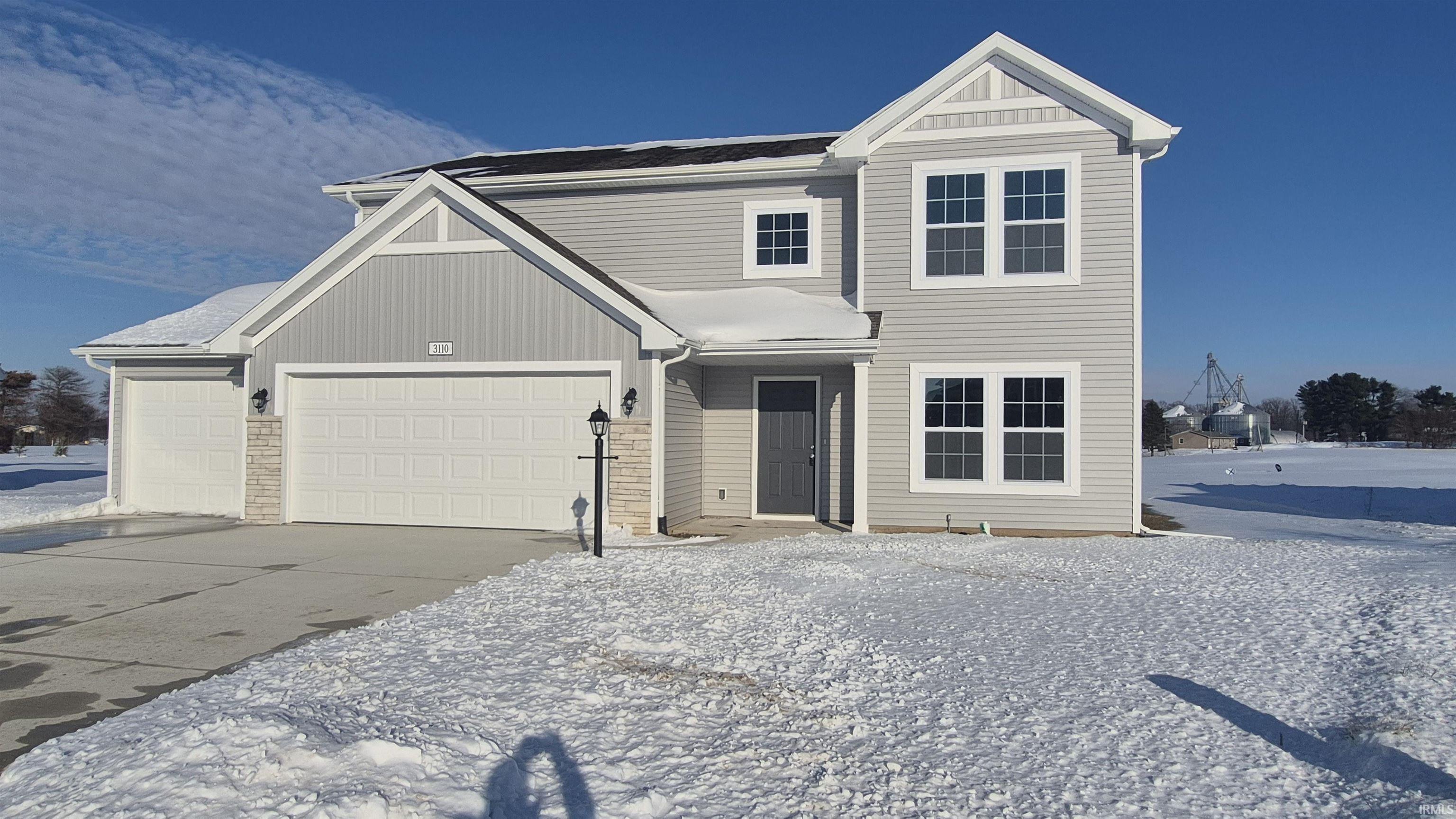Move-In Ready, new construction home in Raccoon Run located in Warsaw Community school district. The largest new construction home at this price point! RESNET energy smart construction will save owner over $1000 yearly plus home has 10-year structural warranty!. With over 2,200 sq ft of living space this floorplan is sure to please with its convenience & style! The main floor welcomes into the foyer, just past a den that serves as a multifunctional flex space, there is a convenient powder bath tucked away, continue on into a large great room. The kitchen which features white cabinets, a 48-inch prep island, quartz counters and tile backsplash, and the dining nook are perfect for entertaining. The second floor features a primary suite, equipped with a huge WIC and private full bath, 3 additional bedrooms, a full bath and 2nd floor laundry complete the second floor.