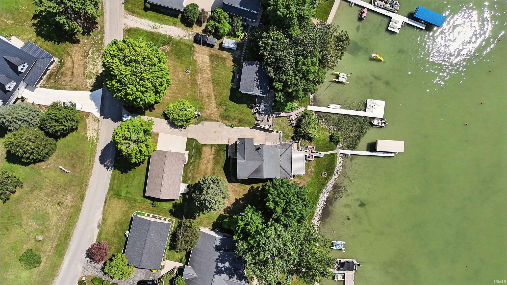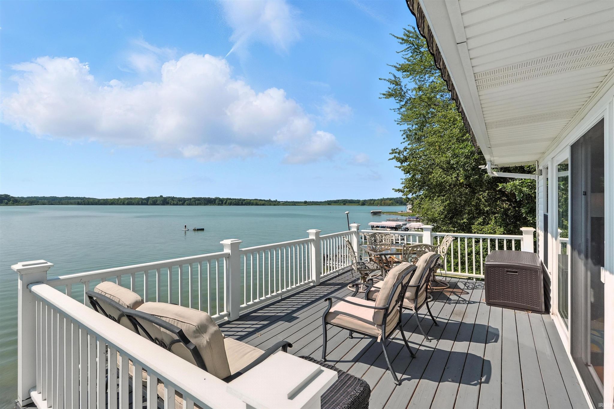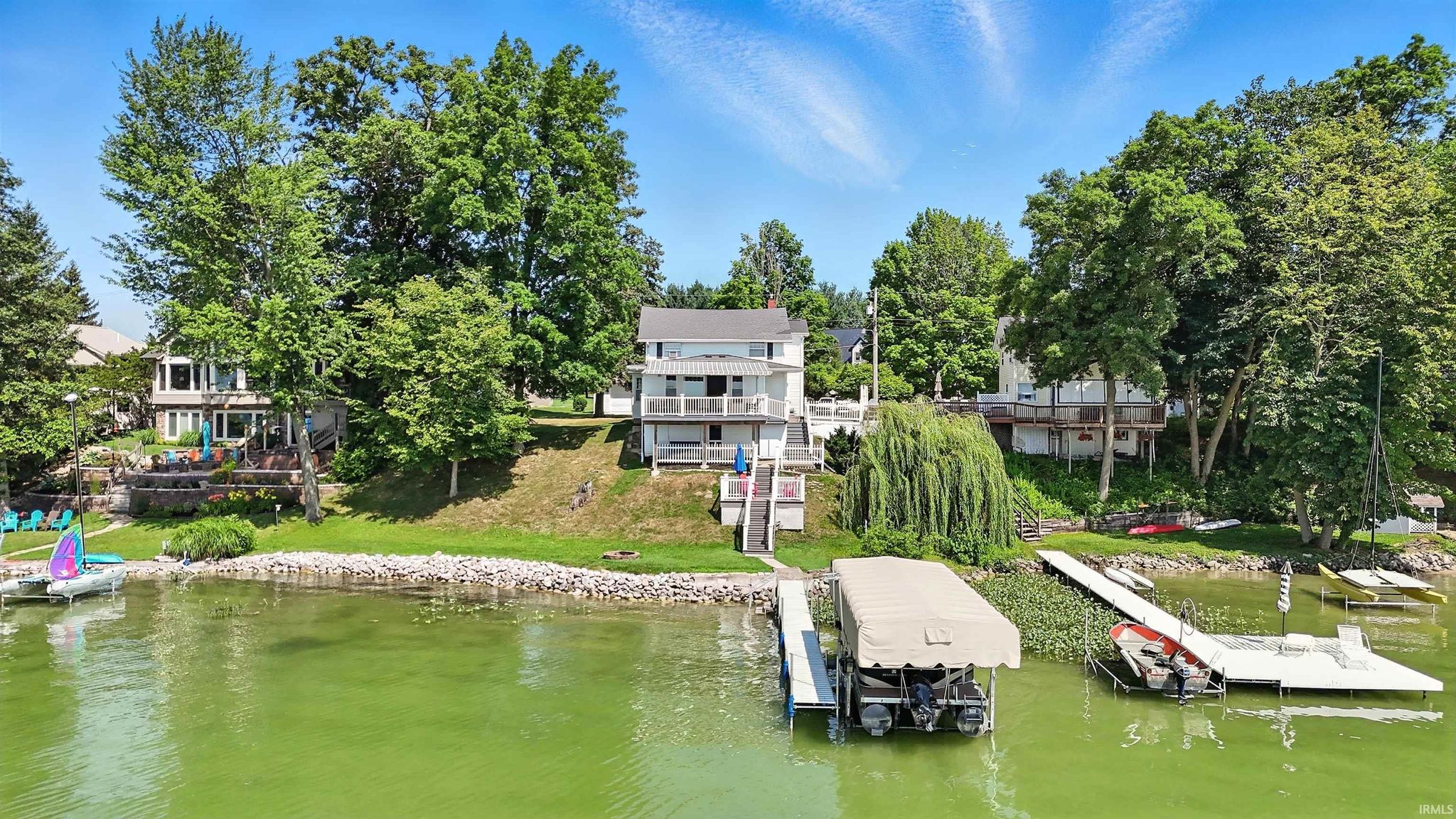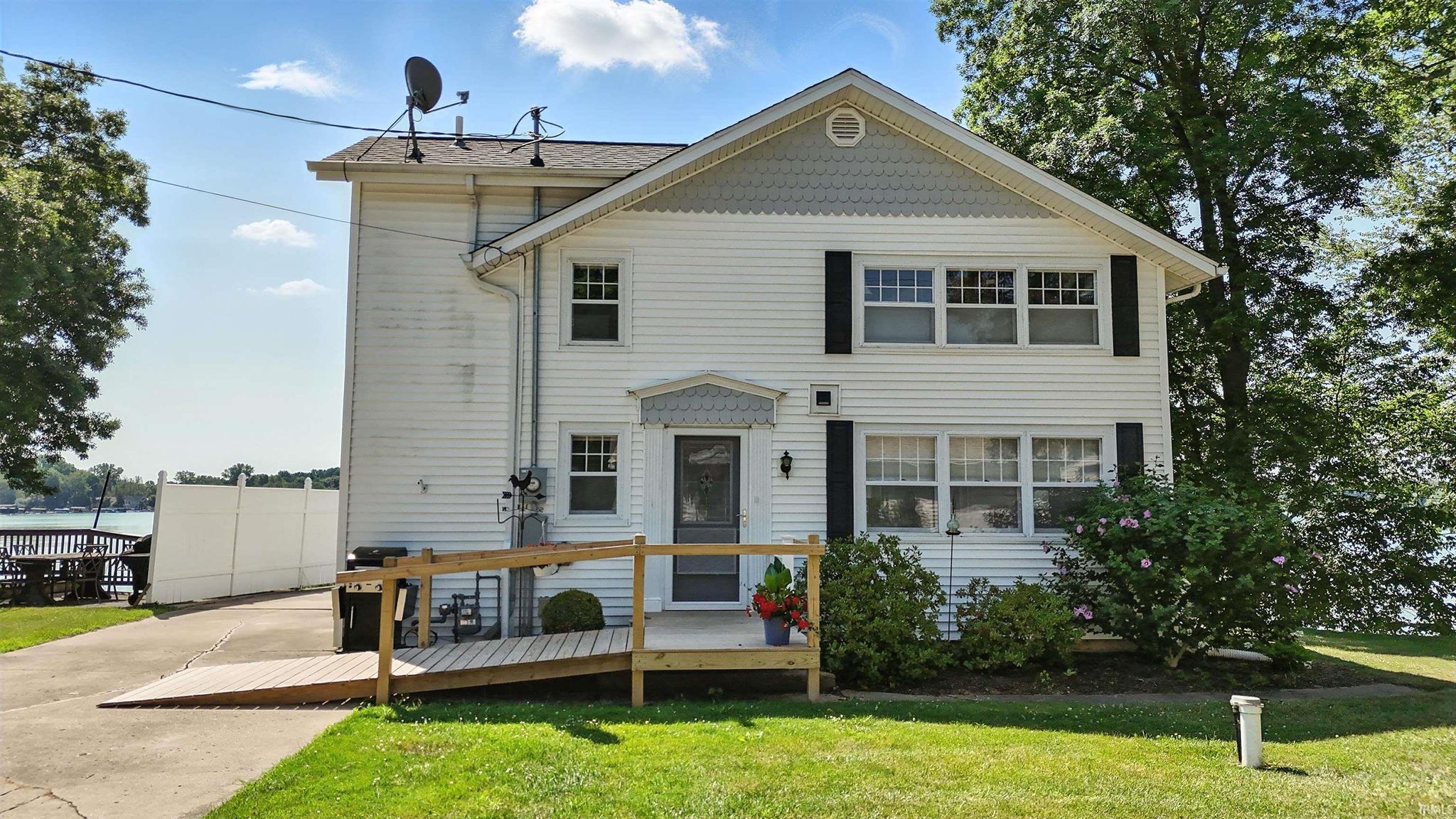 Open house Sunday 3/8/26 2p -4p. SKI LAKEFRONT. SOUTHERN EXPOSURE. 3 LAKES. CUSTOM KITCHEN AND BATHS. 24 x 36 PARTIALLY HEATED GARAGE. CLEAN CLEAR WATER. GREAT BEACH/SWIMMING. BOAT LIFT AND PIER INCLUDED. 1930’s ski lakefront cottage meets modern day living! Opportunities like this on the Oliver Lake Chain do not come around often. This well-maintained 3 bedroom, 2 full bath lakefront home sits on a spacious 0.34-acre lot with 87.4 feet of frontage on all-sports Oliver Lake known for its exceptionally clear, spring-fed and glacial waters, outstanding swimming, and trout stocking/fishing. Oliver Lake connects to both Olin Lake and Martin Lake, forming one of the largest natural undeveloped spring-fed/glacial lake systems in Northeast Indiana. Inside, the home there is 1,876 finished square feet of living space. The custom kitchen by River Woodworking features quartz countertops, soft close doors and drawers, and included appliances, while both bathrooms have been updated with matching quartz counters and River Woodworking vanities. The living area is filled with natural light thanks to an 8-foot sliding glass door facing the lake, which opens directly to the composite deck with a retractable awning. The primary bedroom comfortably fits a king-size bed, and the home includes several upgrades that make it comfortable for year-round lake living, including main-level laundry, a gas fireplace, custom honeycomb window treatments throughout, updated boiler heat (incredibly efficient), mini-split air conditioning with heat pump, water softener, and a 4-inch PVC well. Outside, a long cement driveway offering tons of parking, a 24 × 36 detached garage includes a heated workshop and its own overhead door, provide plenty of space for projects, vehicles, or extra storage. There is also walk-up attic storage, a dry lakeside walkout and walk-up basement that works well for storing lake gear and water toys, a storm shelter, and an additional 8 × 10 storage shed on the west side of the lot. Mature trees provide privacy while the southern shoreline exposure allows for excellent sunlight across the water throughout the day. The property includes a boat lift and pier along with all kitchen appliances, making it ready to start enjoying the lake right away.