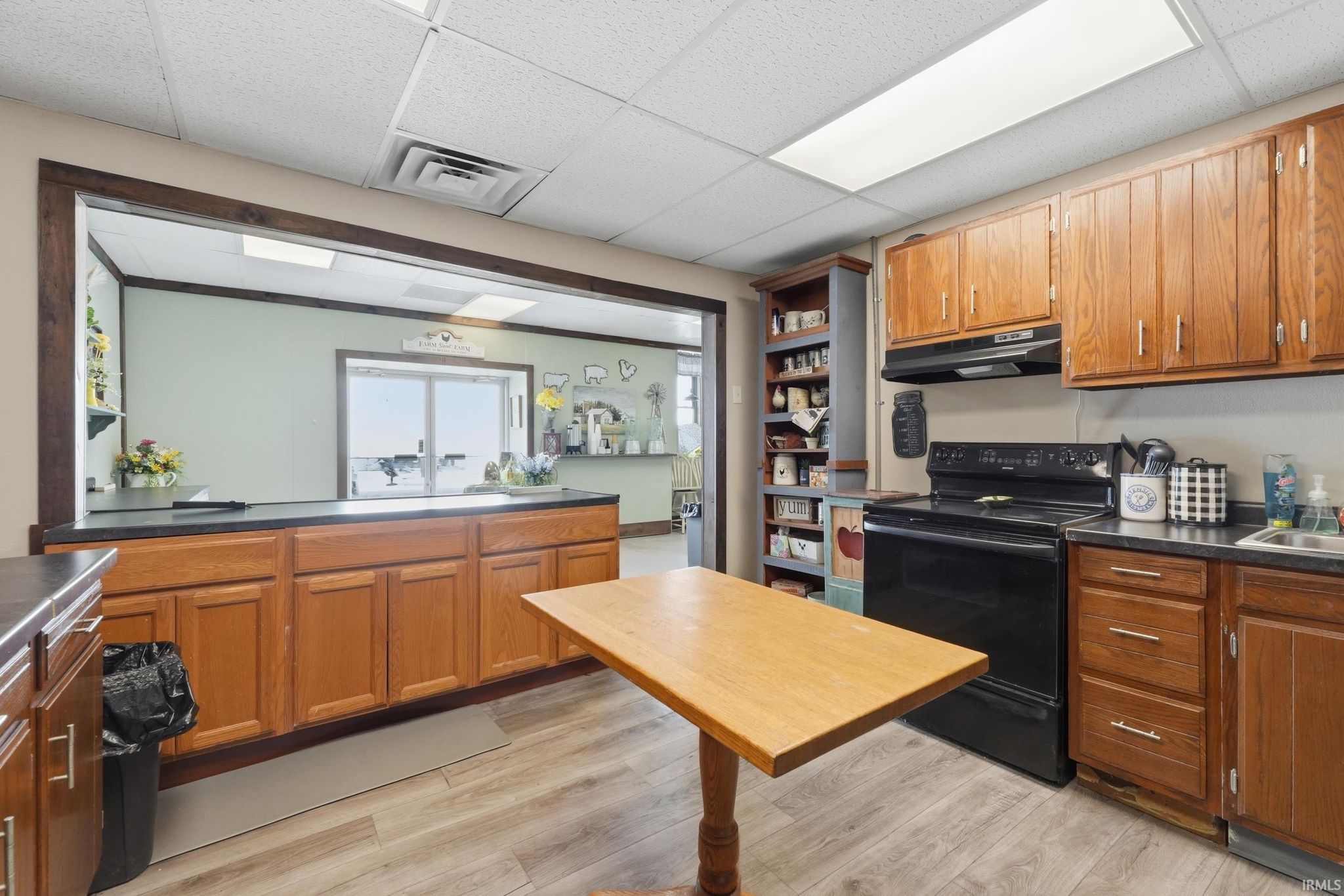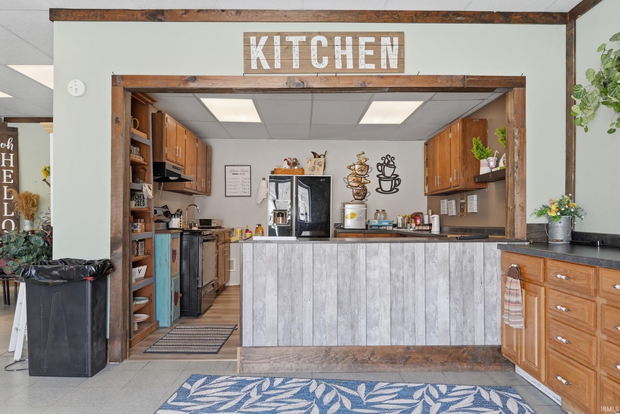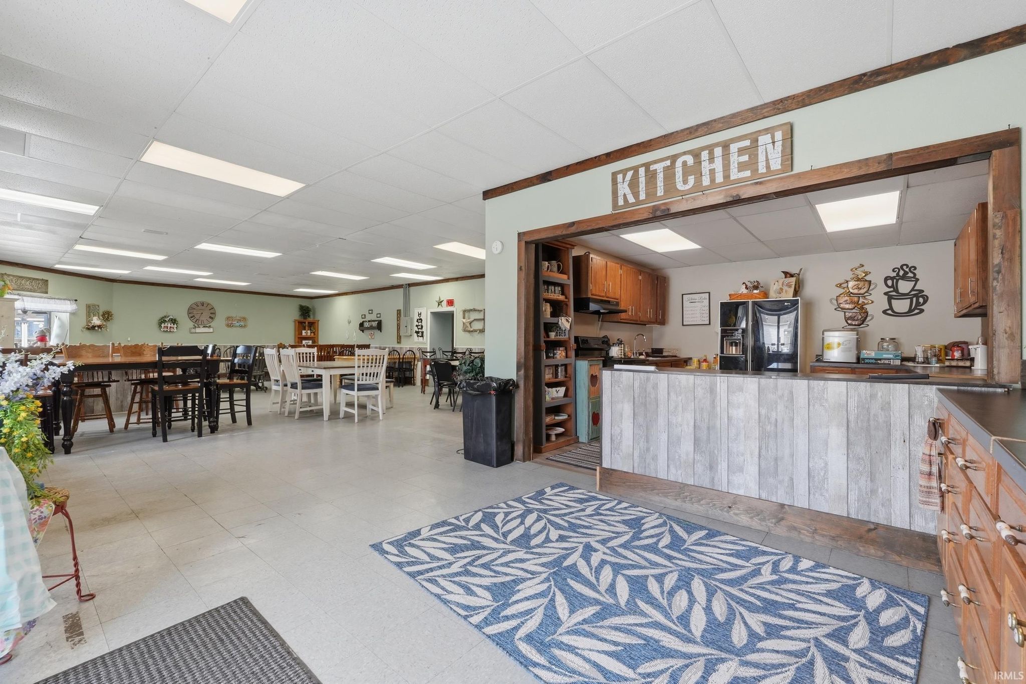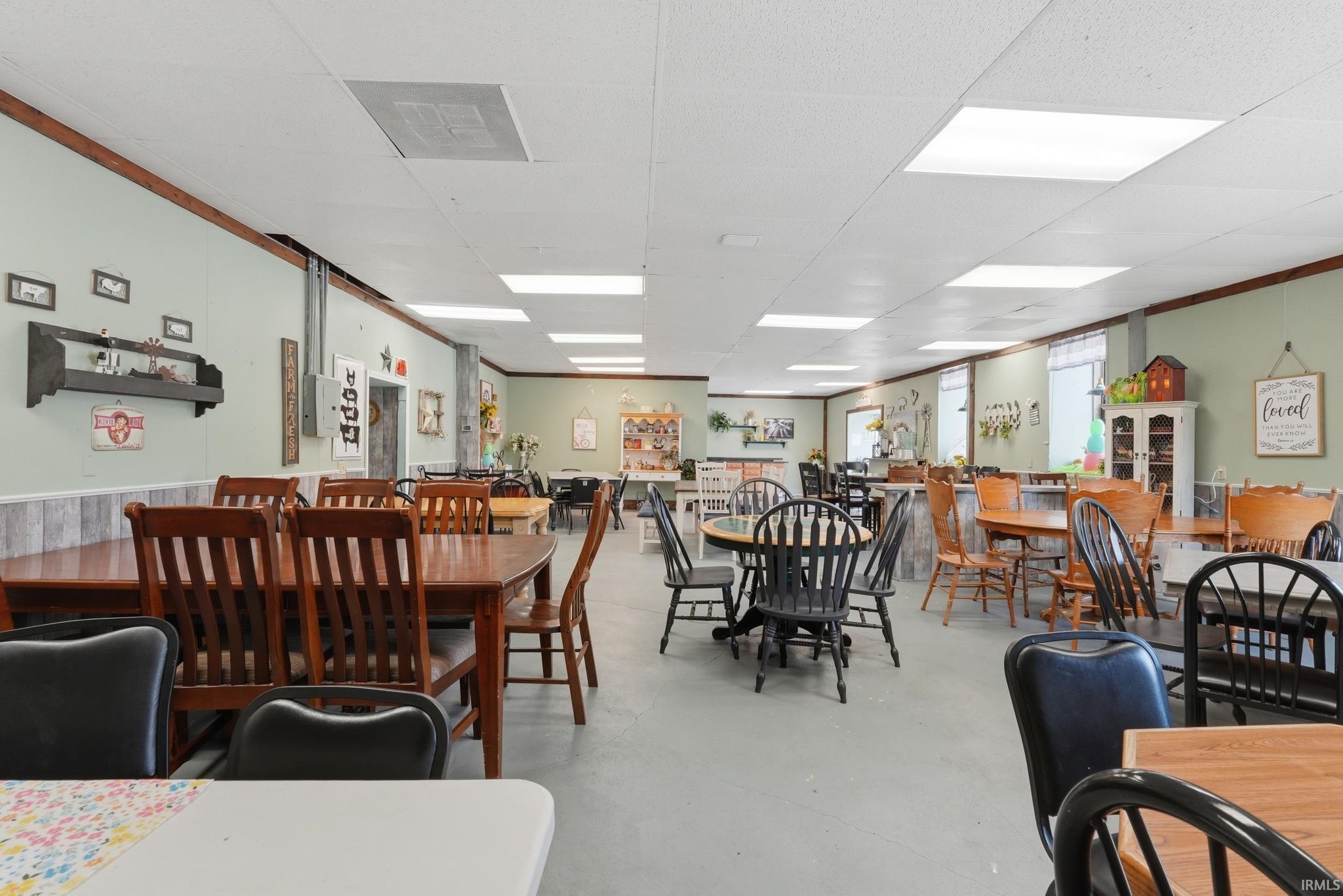Two rentals. Separate Electric meters both with 200 amp Service. Separate Gas meters. BRAND NEW WELL. HIGH VISIBILITY. TENANT IN PLACE THAT WANTS TO STAY. Located at 418 E Defiance Street in Howe, this commercial building sits directly on State Road 120 with steady daily traffic and strong visibility for a business or investment property. The structure is divided into two separate units with individual gas and electric, allowing for mixed-use options including owner-occupant with rental income or full investment use. One side is currently leased to a dog grooming business, providing immediate income, while the other side is set up as open commercial space and was previously used by an HVAC company, making it suitable for service, retail, storage, or light commercial use. The building was originally a bus service facility for the city of Howe IN and you might remember driving by and seeing the back end of the bus extending out of the side of the building. The layout offers multiple entry points and the ability to modify for overhead doors if desired. Utilities include a new well installed in 2024, city sewer, and NIPSCO gas and electric, with both units having INDIVIDUAL 200-amp service. The metal roof is approximately 10 years old, and drainage has been improved with downspouts routed to underground piping. Additional features include a basement area for storage or storm use, finished upper-level storage above one unit, exterior outlets, Lighted signage, and keypad entry on a secondary entrance. Parking is available on the east side with additional nearby overflow options. The property is approximately 2 miles from the I-80/90 Toll Road (Exit 121 at SR 9) and about 5 miles from US 20, providing convenient access for regional travel, service routes, or commuting. Zoning is B4, supporting a range of commercial uses. This is a straightforward opportunity for a user or investor looking for a functional building with income in place, flexible space, and a strong location along a primary route through Howe.
