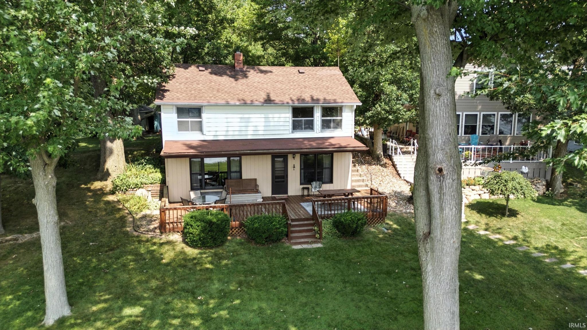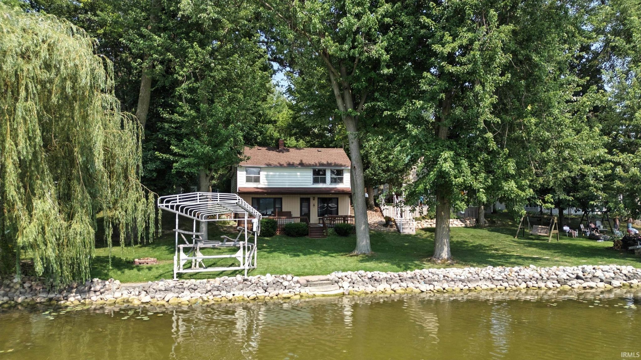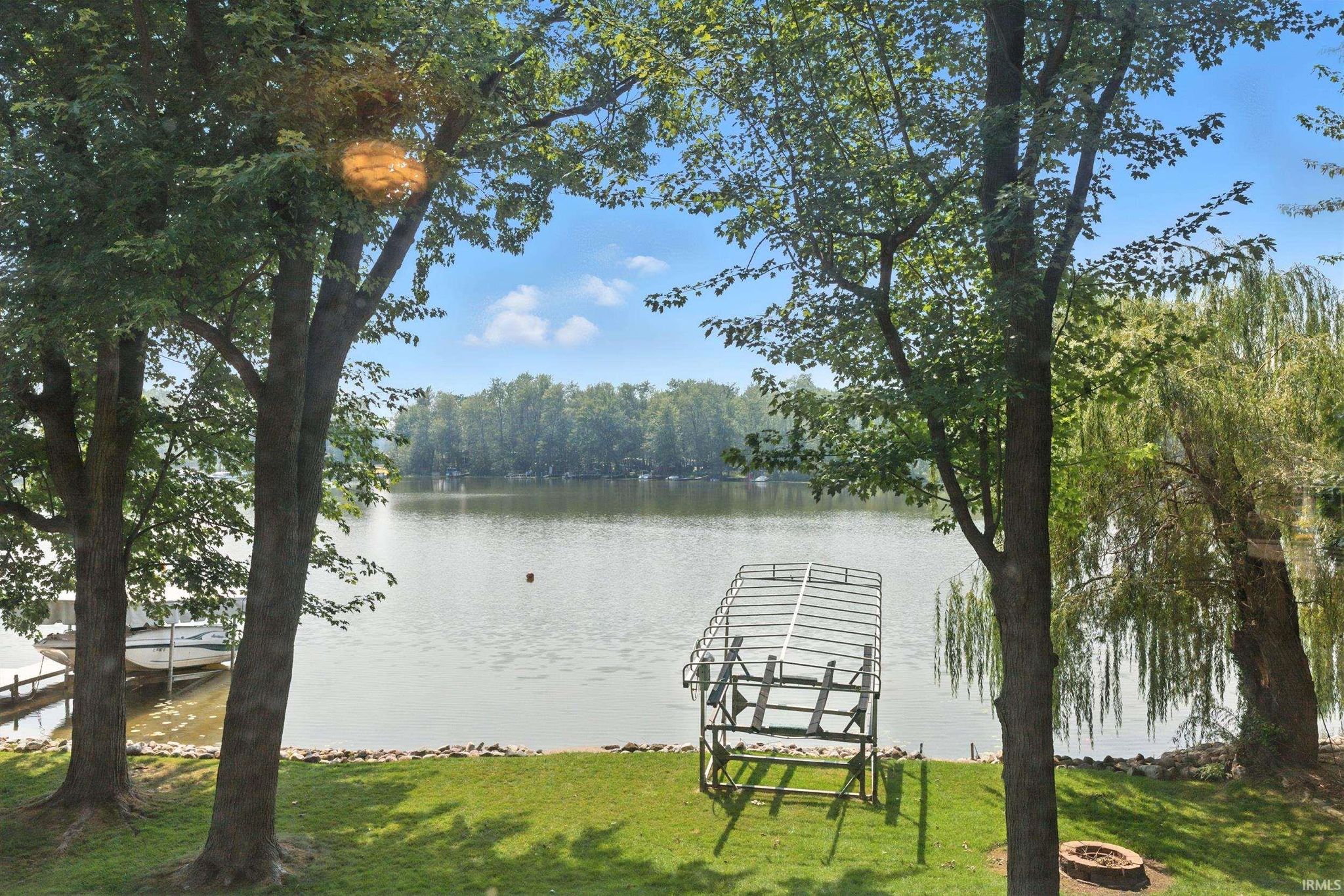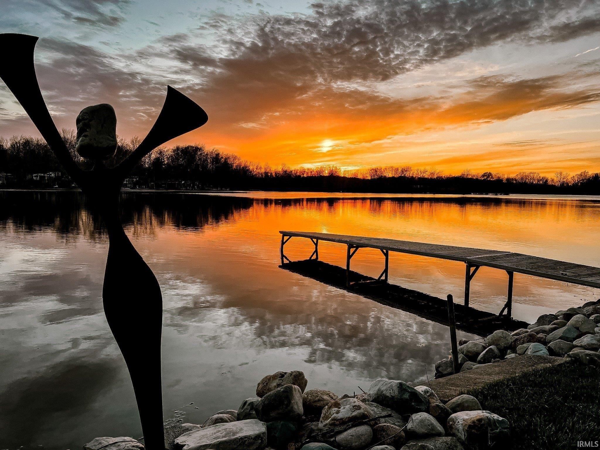 INDIAN CHAIN OF LAKES, Messick, Hackenburg, Dallas, Westler, Witmer lakes all accessible from this one location. That's two ALL SPORTS ski lakes, and 3 seperate fishing lake all 5 lakes form this one location. Inside you'll find 2 beds, 1 bath, oversized two car garage with just under a quarter acre. LARGE FRONT AND BACK YARD, glacial stone seawall, 4 ft aluminum pier included with an EXCEPTIONAL beach for swimming. This Messick lake home is for the first time since the 1970s, this west-facing/Sunset lakefront home is available and is located about 45 minutes from Fort Wayne, 35 mins from Goshen, approx 2.5 hours from Indianapolis, and roughly 3 hours from Chicago. With plenty of parking and EXCEPTIONAL privacy on a no through private road. Enjoy sunsets over the water, a firm sandy and stone beach area, and shady willow trees along the shoreline. The property includes a boat lift with cover, and three titled boats with trailers. The home itself is a single-story, two-bedroom with a full walk out basement at the lake level and 200-amp electrical service. The protected land behind the home provides peace and privacy, unlikely to be developed.Whether as a full-time residence, a weekend retreat, or a short-term rental investment, the location and lakefront setting offer long-term value and potential. Room for 3rd bedroom on second level by converting the second living room into a large 3rd bedroom and bathroom expansion opportunity.